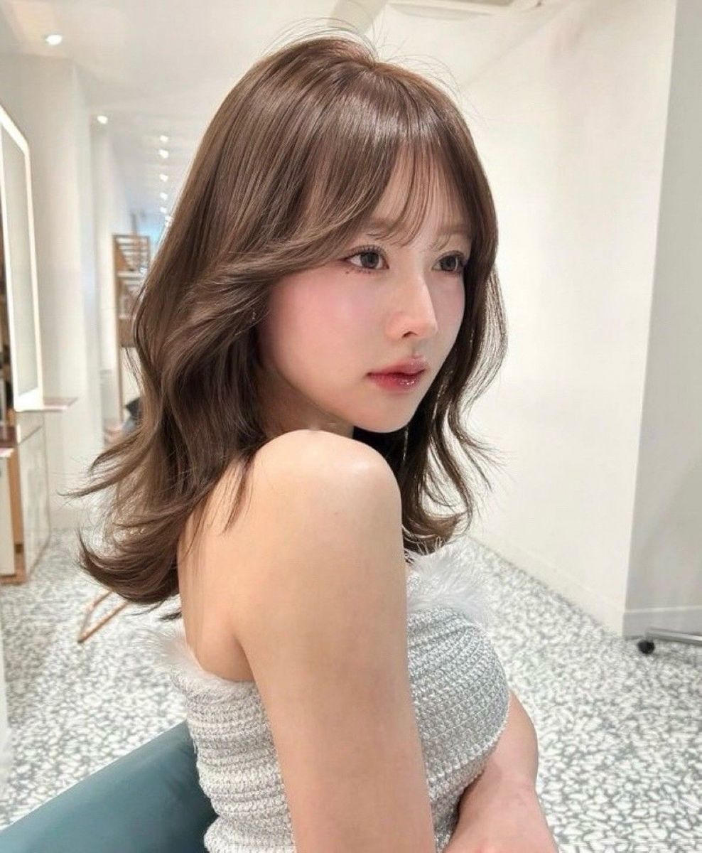 Đặc biệt, tóc ngang vai nhuộm nâu không kén dáng mặt, phù hợp cả với nàng tóc dày lẫn tóc mỏng.