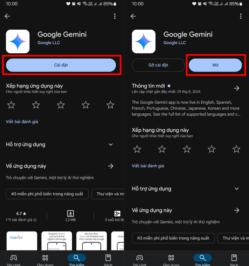 Bạn có thể tải ứng dụng Gemini trực tiếp trên Google Play Store, sau đó đăng nhập bằng tài khoản Google tương tự như trên web. Ứng dụng di động giúp bạn tận dụng tốt hơn các tính năng như giọng nói, camera và tích hợp sâu với hệ điều hành Android.