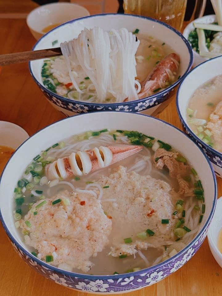 Bún quậy là món ăn “độc quyền” của Phú Quốc, thường được dùng vào buổi sáng. Tên gọi xuất phát từ cách ăn đặc biệt: thực khách tự pha nước chấm từ bột canh, bột ngọt, đường, quất, ớt xay rồi quậy đều đến khi sánh lại. Một tô bún quậy gồm mực tươi, chả tôm, chả cá ăn kèm nước dùng nóng. Khi ăn phải vừa chan nước vừa quậy mạnh tay để gia vị tan đều, tạo nên trải nghiệm rất riêng, đậm chất địa phương.