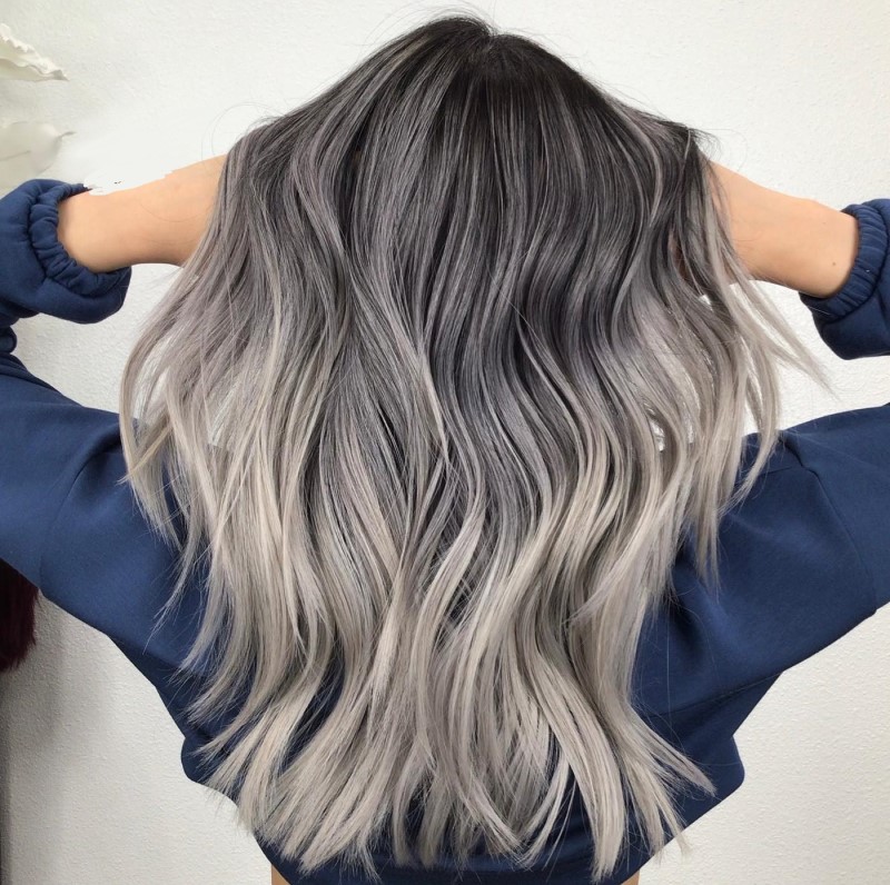 13. Tóc balayage vàng tro