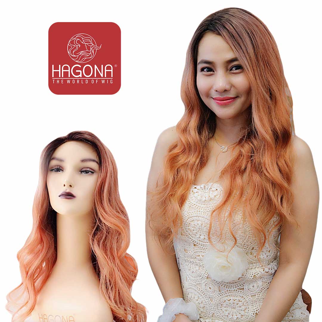 Tóc giả nữ nguyên đầu dài xoăn màu cam nhạt GOOD VIP 2S65 - 100% tóc thật