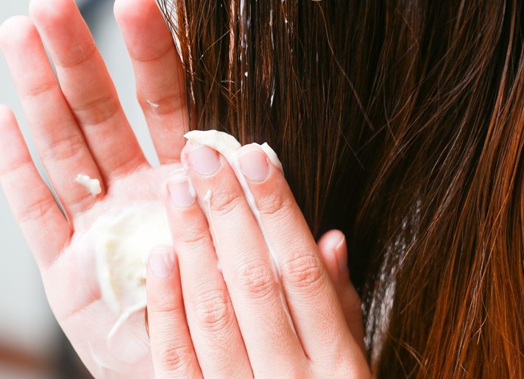 Gội sạch bằng dầu gội đầu và thoa dầu xả lên tóc.