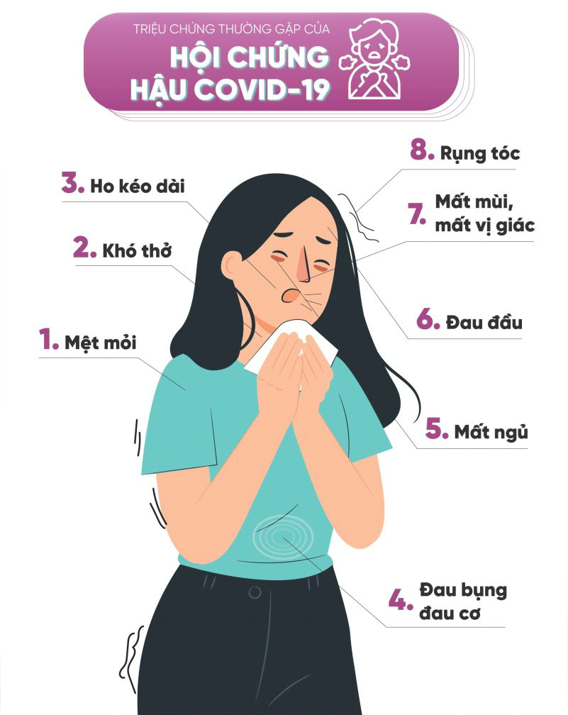 Mệt mỏi, khó thở, trí nhớ kém, rụng tóc, suy giảm chức năng nhận thức,v.v là những biểu hiện phổ biến nhất ở người bệnh hậu Covid. Những triệu chứng này tuy không nguy hiểm đến tính mạng nhưng lại gây ra các ảnh hưởng tiêu cực đến sức khỏe người bệnh, cản trở quá trình hồi phục sau nhiễm Covid và quá trình sinh hoạt hàng ngày.