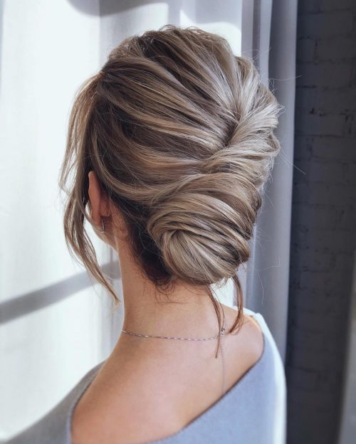 Đây là một kiểu tóc đẹp dành cho mẹ của cô dâu hay chú rể đều hợp. Búi tóc lớn với những lọn tóc rối không yêu cầu tóc quá dài. Bí quyết là tăng âm lượng ở chân tóc thông qua backcombing trước khi cuộn tròn toàn bộ đầu và soạn bài cập nhật. Bạn có thể búi cao hoặc thấp tùy thích để có hiệu quả như mong muốn.