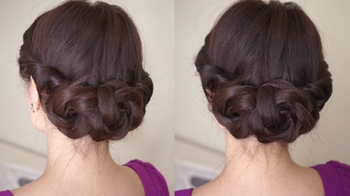 Kiểu búi xoăn hai phần này là một kiểu tóc cập nhật dễ thực hiện tuyệt vời, hoàn hảo cho những phụ nữ có mái tóc dài trung bình.