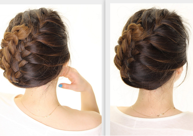 Phụ nữ trung niên có mái tóc dài ngang vai sẽ thích kiểu tóc búi nửa đầu dễ dàng bắt chước kiểu tóc buông xõa với kiểu tóc tết lệch.