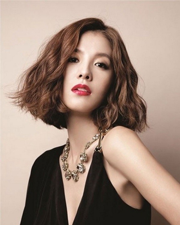 Tóc ngắn ngang vai uốn cụp cho phụ nữ trung niên