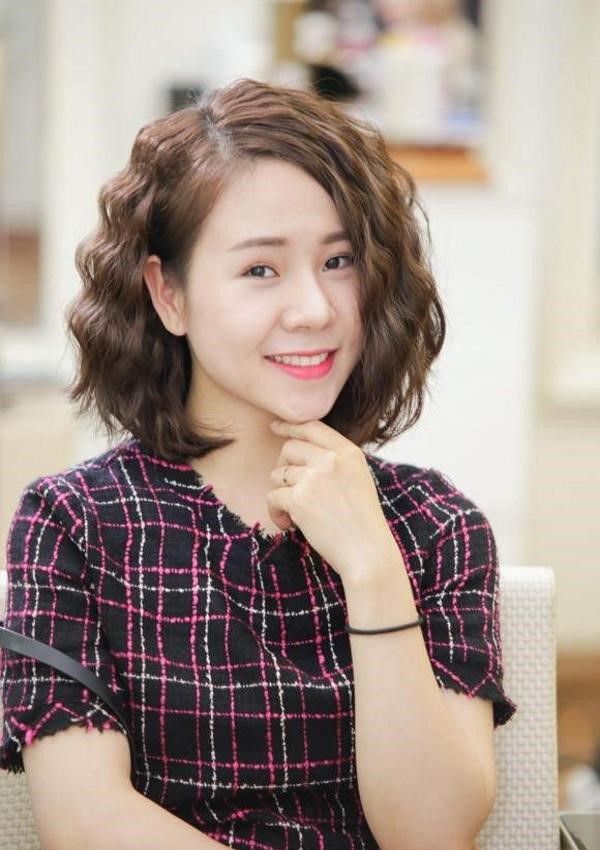 Tóc ngắn ngang vai xoăn sóng nhẹ cho nữ trung niên