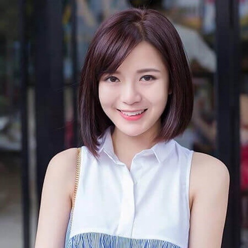 Tóc bob uốn cụp mái chéo cho nữ trung niên
