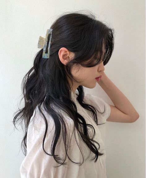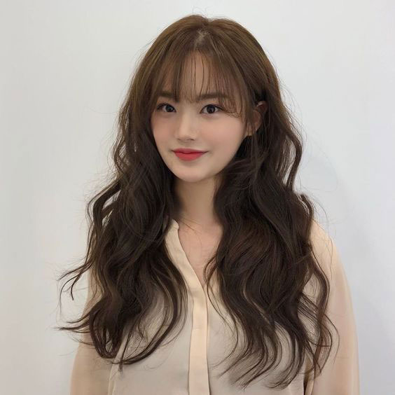 Tóc giả nữ xoăn sóng dài mái thưa Hàn Quốc