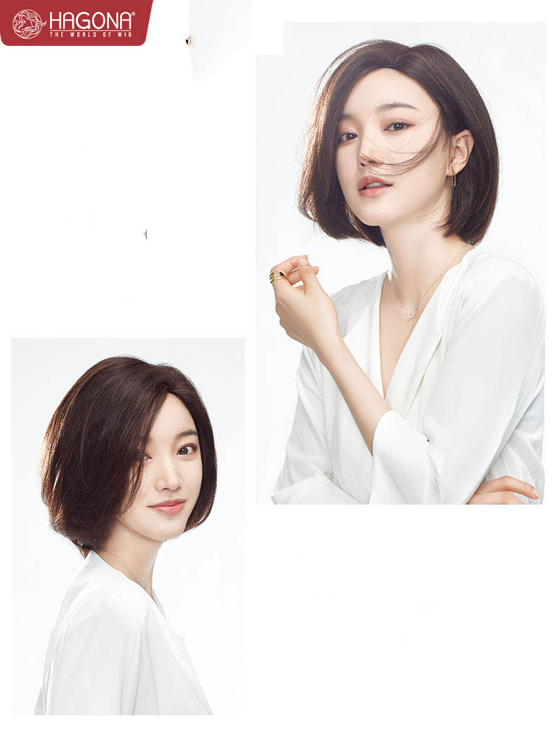 Tóc giả ngắn cho mặt tròn bầu bĩnh