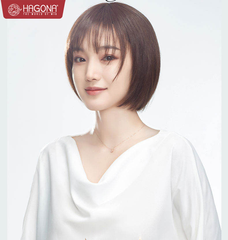 Tóc giả bob nữ mặt tròn bằng tóc thật thanh lịch
