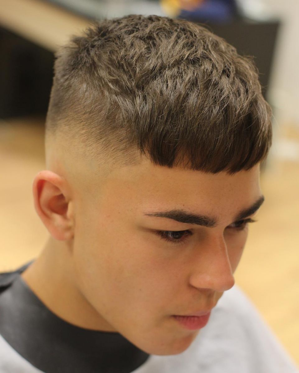 Đây là một trong những kiểu tóc back to school cho nam đã được ưa chuộng từ rất lâu. Cắt tóc này cần một chút công việc ngoại trừ việc cắt tóc thành độ dài rất ngắn trên toàn bộ đầu. Một số sợi tóc được chải đến trán và những sợi khác được tạo kiểu theo các hướng khác nhau.