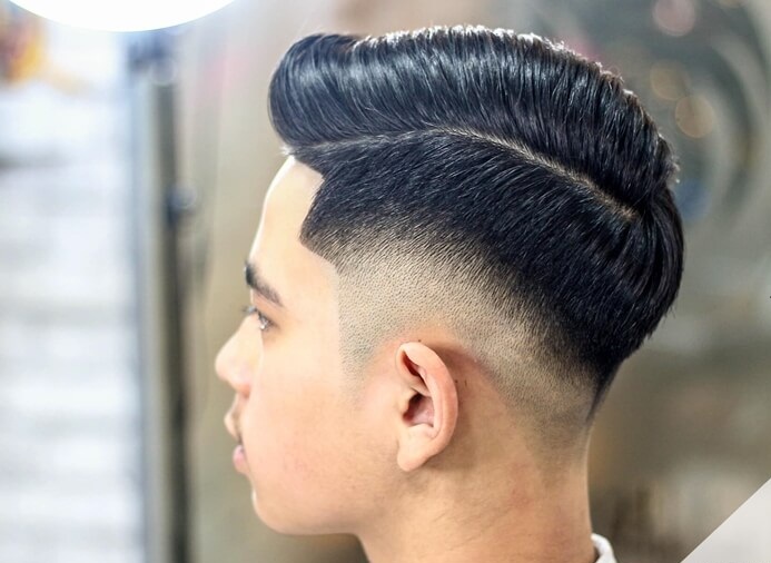 Đây là một trong những kiểu tóc phù hợp nhất cho nam sinh vì nó trông đặc biệt hợp thời trang và thông minh cho một cậu bé đang đi học. Phần tóc trên đỉnh được cắt để tạo kiểu pompadour và phần tóc hai bên được làm mờ bằng cách sử dụng dao cạo cạnh thẳng. Điều này tạo ra một phong cách tương phản.