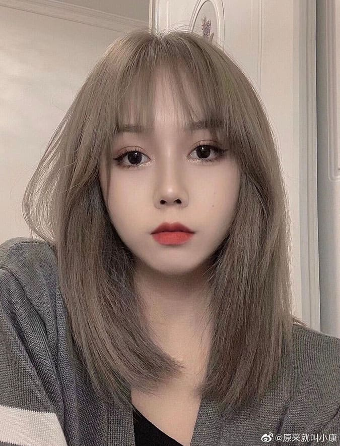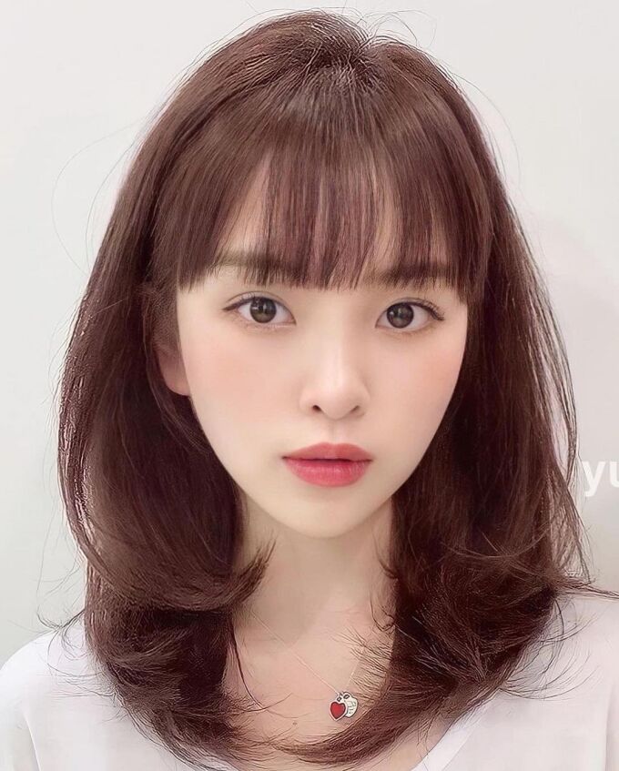 Tóc xương đòn kết hợp với mái thưa là kiểu tóc trẻ trung, đáng yêu và phù hợp với mọi khuôn mặt. Bạn có thể kết hợp cùng với các màu tóc sáng để tạo nét tươi trẻ và tôn lên làn da trắng sáng nhé.