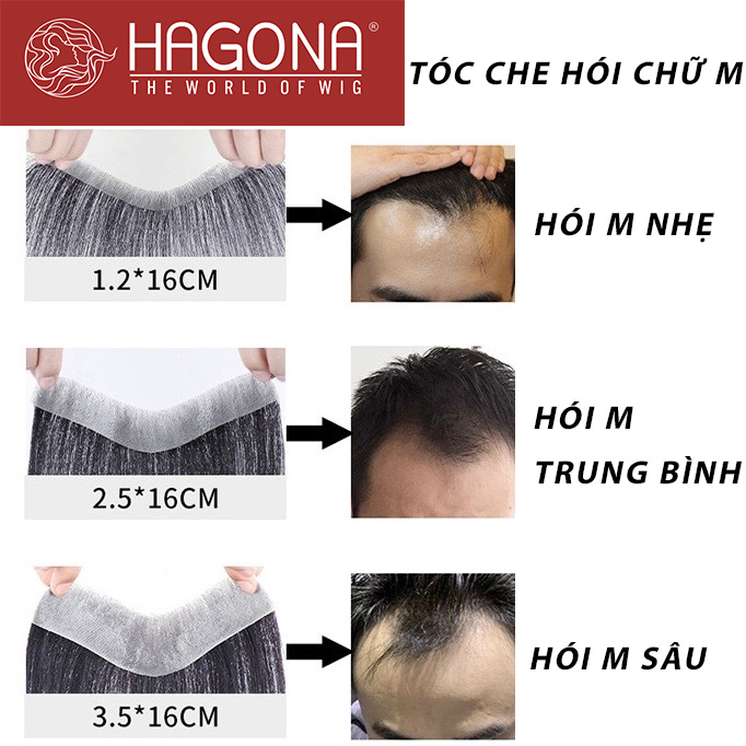 Tóc giả che hói chữ M siêu da đầu làm bằng tóc thật